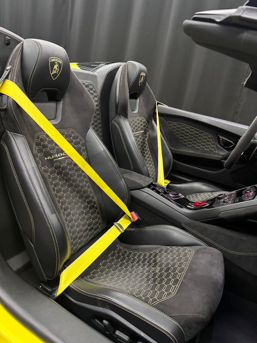 Oplev essensen af frihed og rå kraft i denne Lamborghini Huracán Spyder LP580-2, præsenteret i den ikoniske Giallo Inti – Lamborghinis legendariske gule nuance, der får enhver vej til at føles som en catwalk for superbiler.